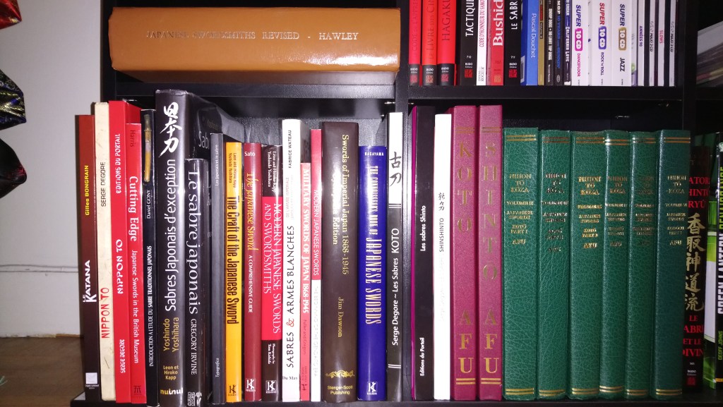 Je décompose en 3 groupes les livres. Le premier concerne les premières lectures, décrivant vastement le sujet pour les débutants. Le deuxième groupe est celui des livres s’adresse à ceux qui connaissent déjà un peu le sujet, et désirent approfondir certains domaines. Le troisième et dernier groupe est seulement pour les connaisseurs, collectionneurs, voir experts, car on y trouve des ouvrages très pointus sur des domaines bien particuliers de l’univers du sabre japonais.