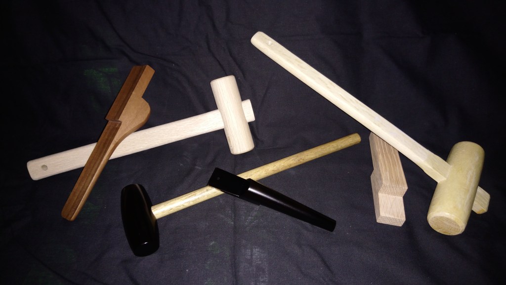 Parfois il est difficile démonter un sabre, les pièces sont quelques fois trop serrées. Il est alors bon de se munir de ategi et suchi (maillet et cale). Ces outils en bois permettent d’exercer une force sur les pièces du sabre, sans abimer le métal. https://www.katanas-samurai.com/Maillet-Japonais-cbaaaarHa.asp