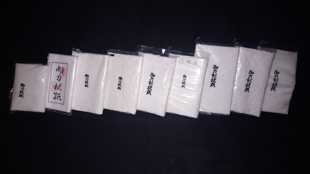 Une fois l’ancienne pellicule grasse retirée, il faut tamponner la lame avec un uchico (tampon). Puis repasser le nuguigami afin de nettoyer le hada (grain de l’acier). Personnellement j’effectue 2 fois cette opération, afin de bien nettoyer le sabre.